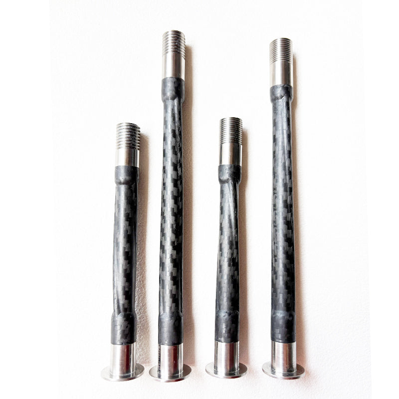 Our carbon fiber thru-axles feature an integrated titanium alloy and carbon fiber construction, combined with professional welding techniques, delivering lightweight, high strength, and exceptional stability for high-performance bicycles.Available in two lengths—110–127mm and 159–170mm—to fit most road bikes. Equipped with three thread specifications: M12×1.0, M12×1.5, and M12×1.75, ensuring broad compatibility.